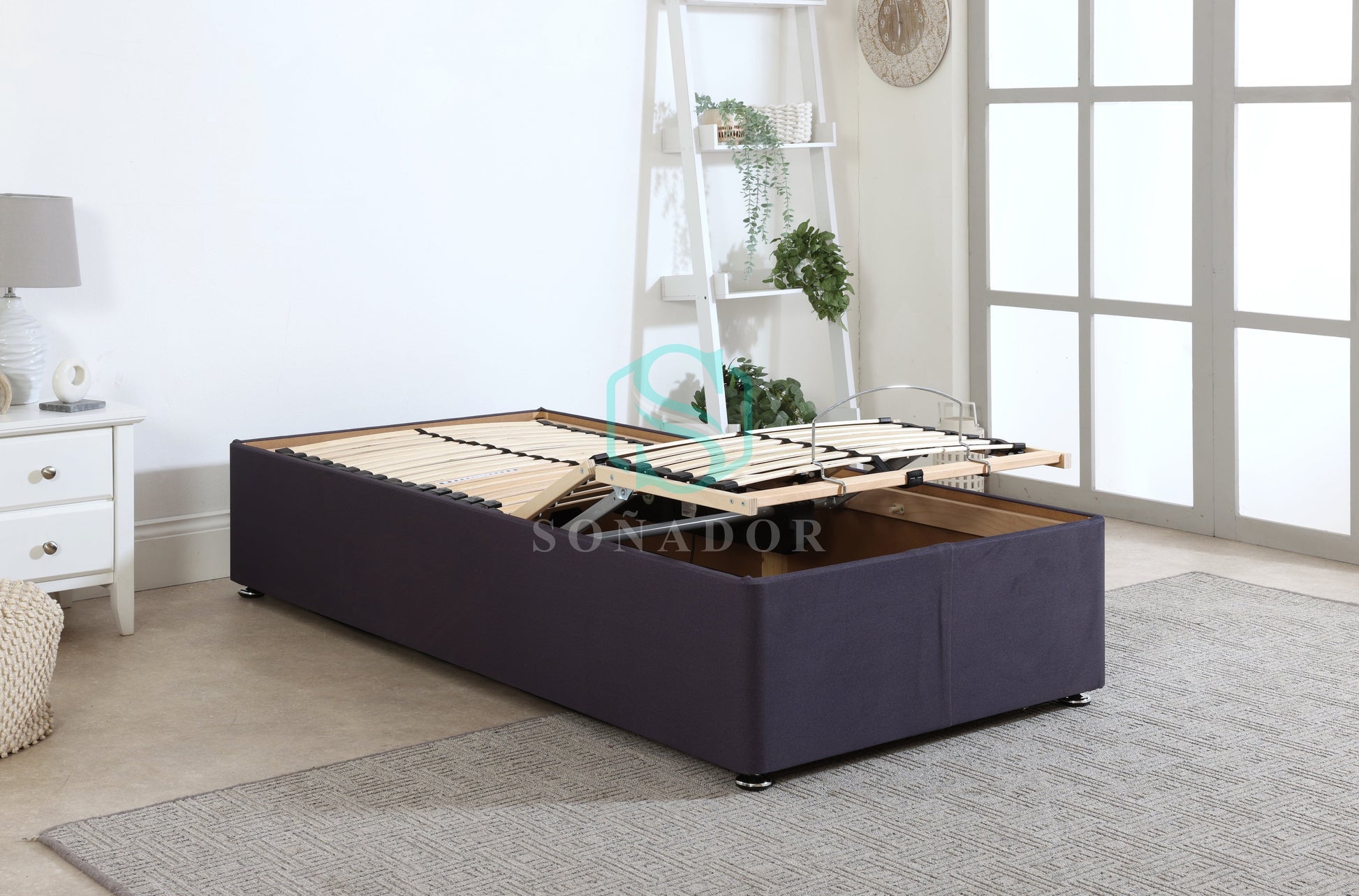 An electric base, also known as an adjustable bed base, is a type of bed frame that allows the user to adjust the position of the mattress using an electric motor. This motorized base lets you raise or lower the head, foot, or even the entire bed to find the most comfortable sleeping or resting position. Electric bases are often equipped with features such as a remote control for easy adjustments, and some models may also include additional features like massage functions or memory settings for preferred positions. These bases are ideal for people with specific health needs, such as back pain or sleep apnea, as they can be adjusted for optimal support and comfort.